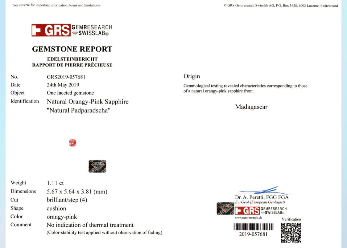 1.11ct Unheated Padparadscha Sapphire - GRS
