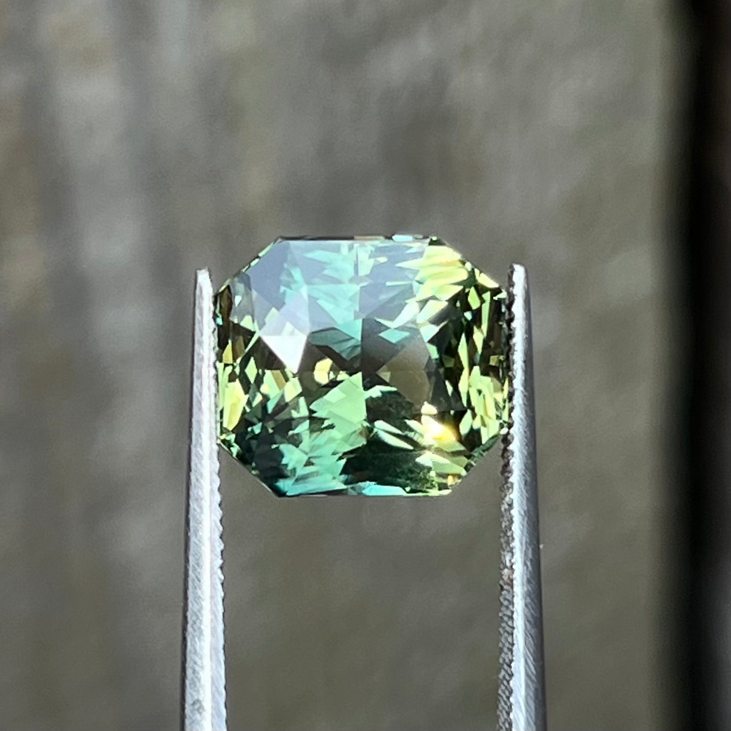 Comment -  Beautiful Bi-colour Teal Sapphire. The rough was bought by us in Diago, directly from a small scale miner.