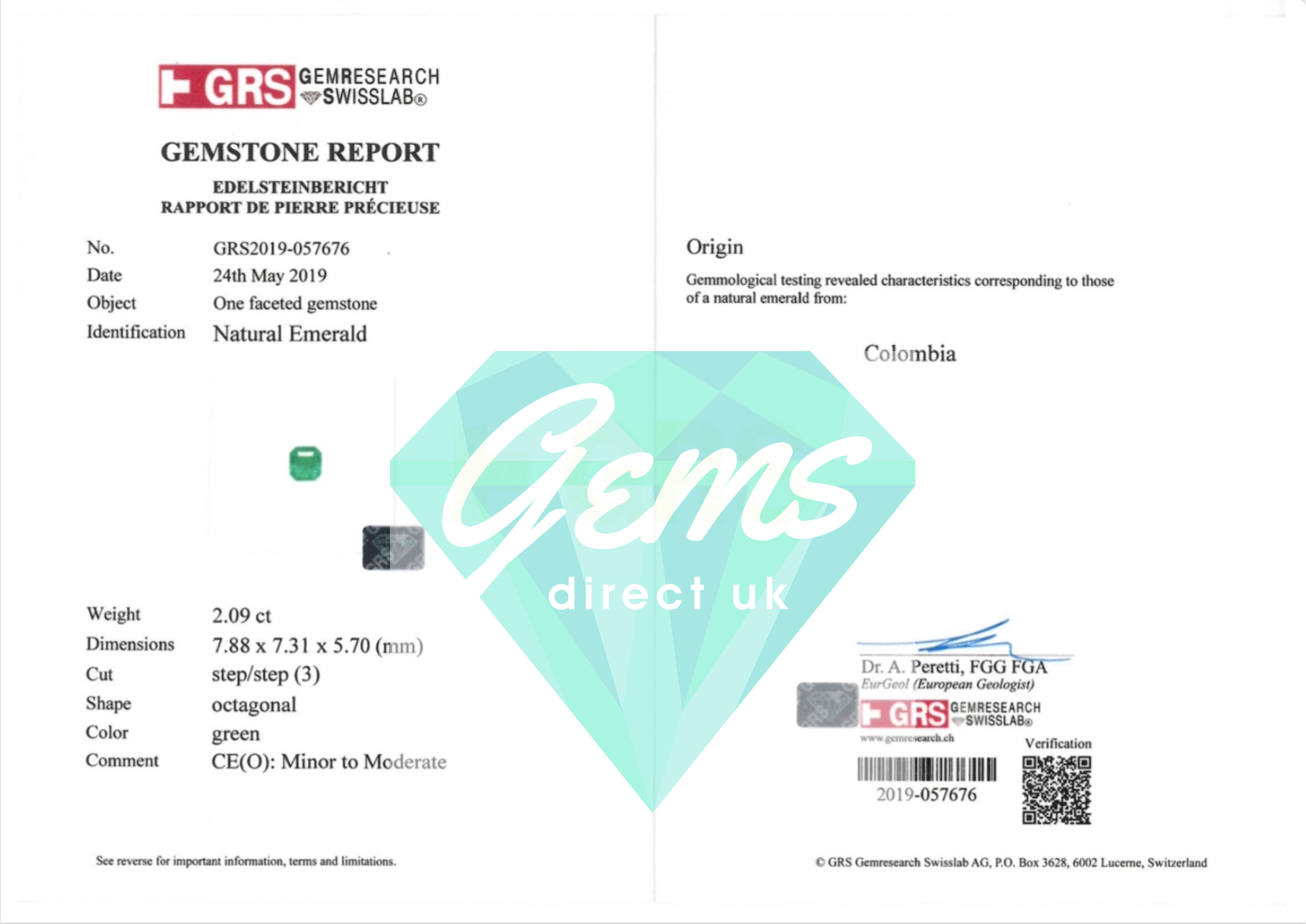 2.09ct Colombian Emerald - GRS