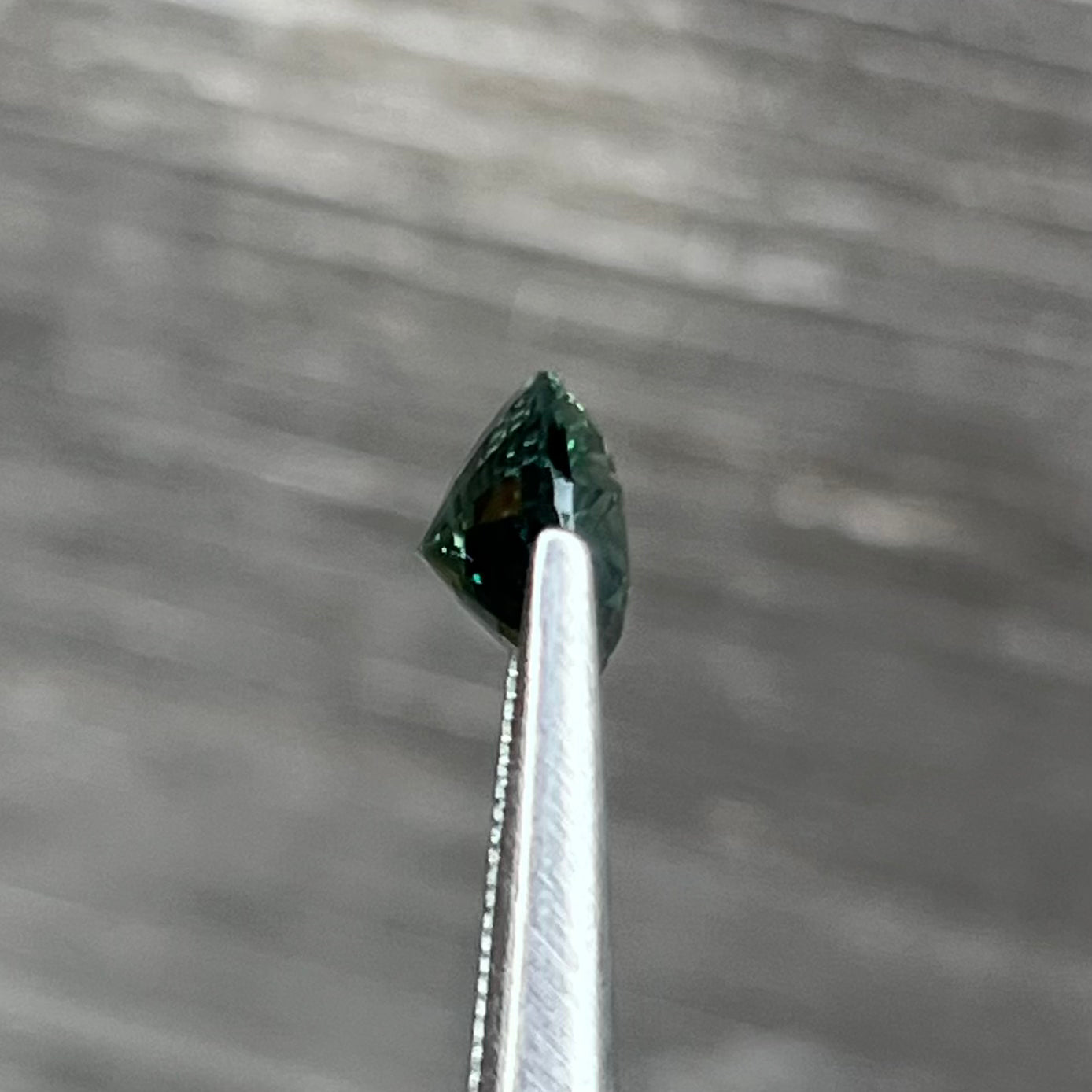 Comment - Beautiful Teal Sapphire. The rough was bought by us in Diago, directly from a small scale miner.